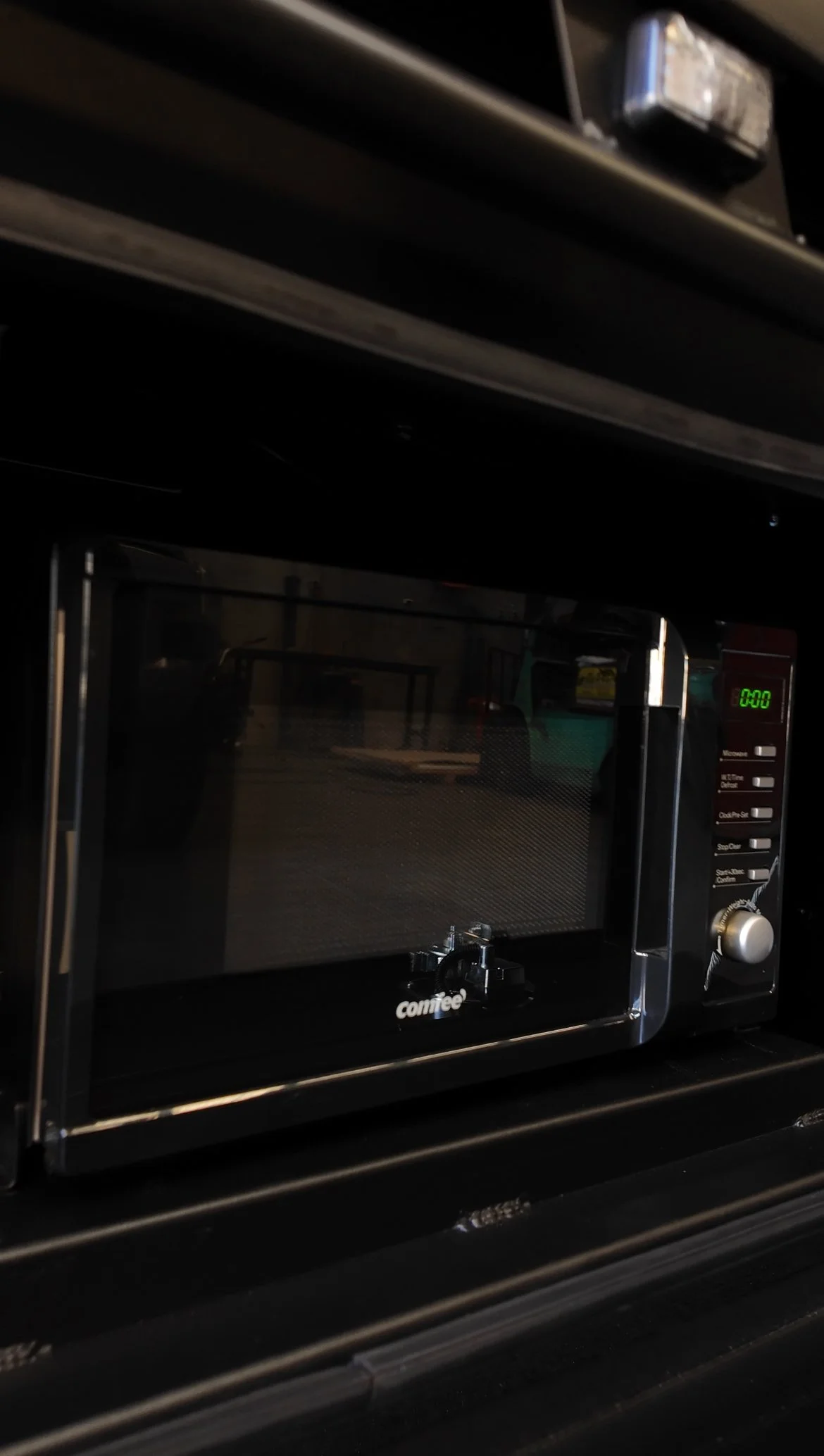 In-built microwave and battery system underneath the tray to free up main compartments